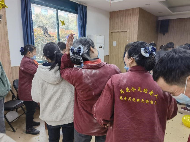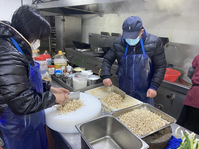 食堂里忙的热火朝天,年味十足。随着一道道香气扑鼻、热腾腾的菜肴端上分餐桌,大家忘却了屋外寒风凛冽,只感觉屋内温暖香甜。老人们吃的格外开心,院里洋溢着欢声笑语。